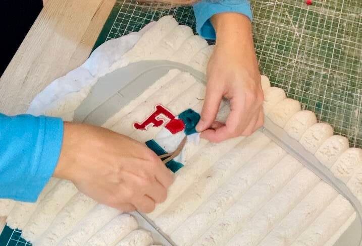 J'utilise la technique de l'appliqué pour découper les lettres directement dans ces tissus si spéciaux pour vous...