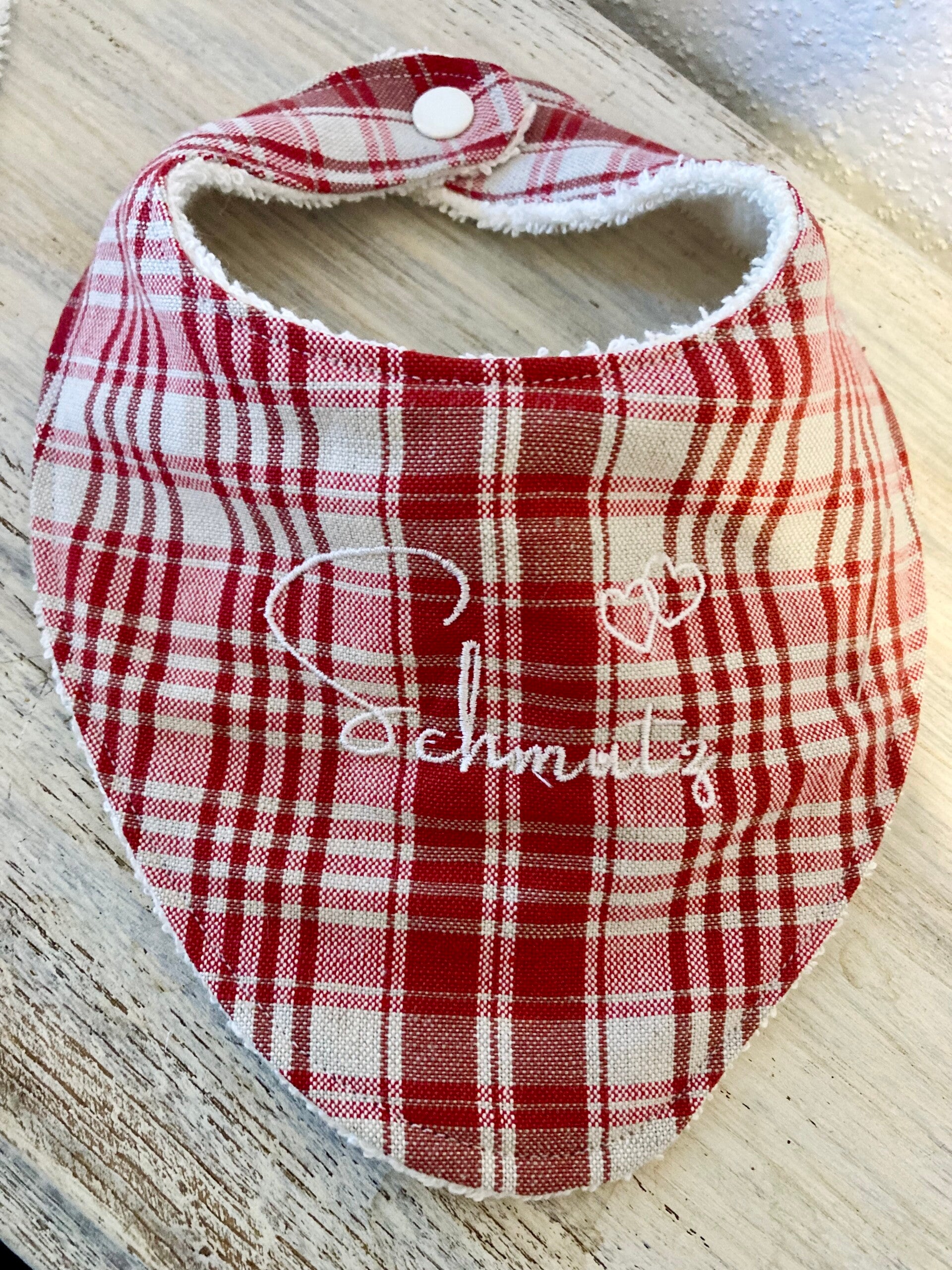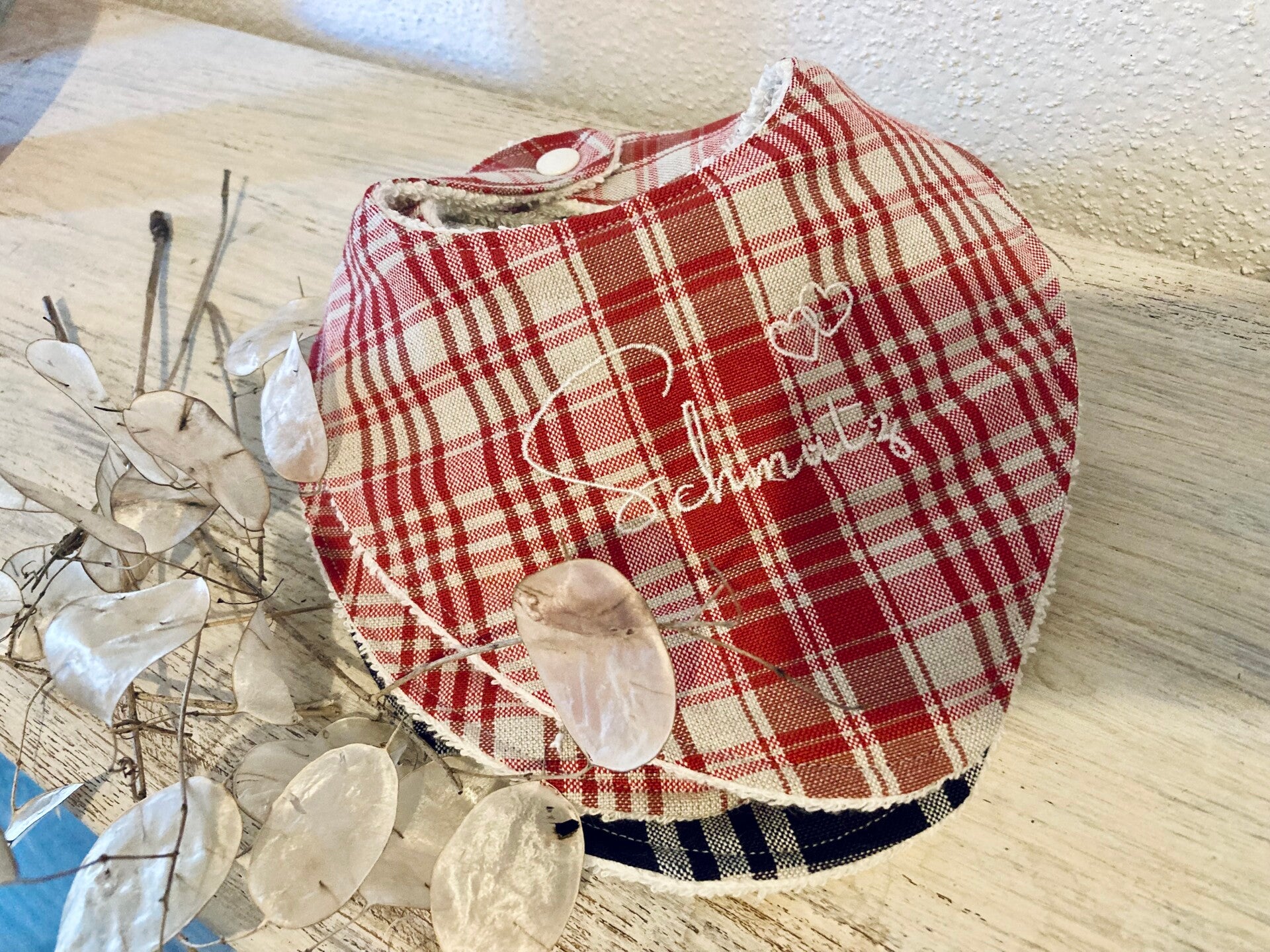 Ce petit bavoir en véritable tissu Kelsh (tissé à Thann, en Alsace) accompagnera bébé dès 4 mois, au moment où les premières dents arrivent… et où il commence mystérieusement à baver plus que de raison 😅